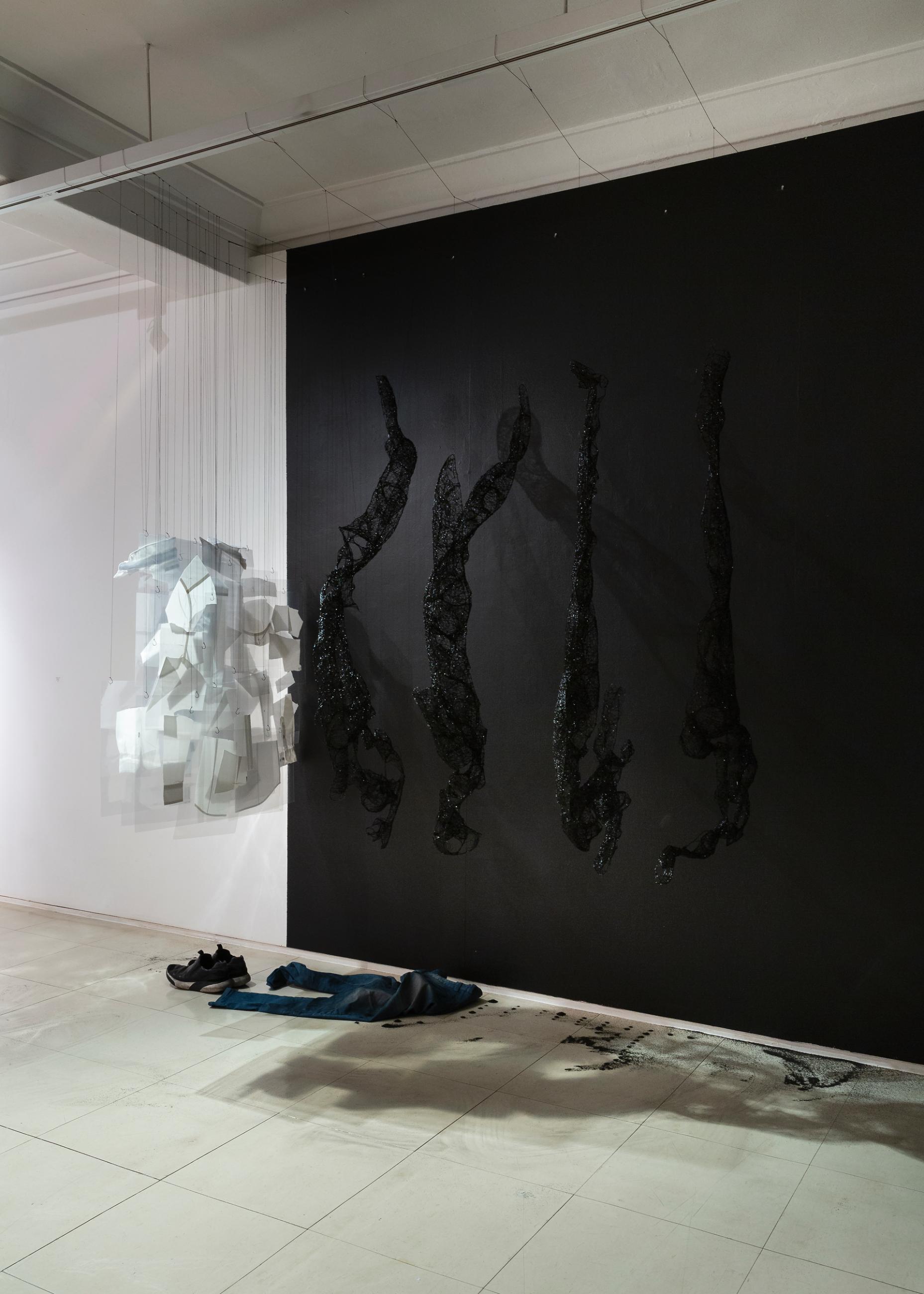 • ÀÛ°¡¸í : ÀÌÁ¤µ¿,  Ãµ, ½Å¹ß, û¹ÙÁö,3DÆæ µå·ÎÀ×, °ËÀº ¸ð·¡ 210x240x125cm 2018