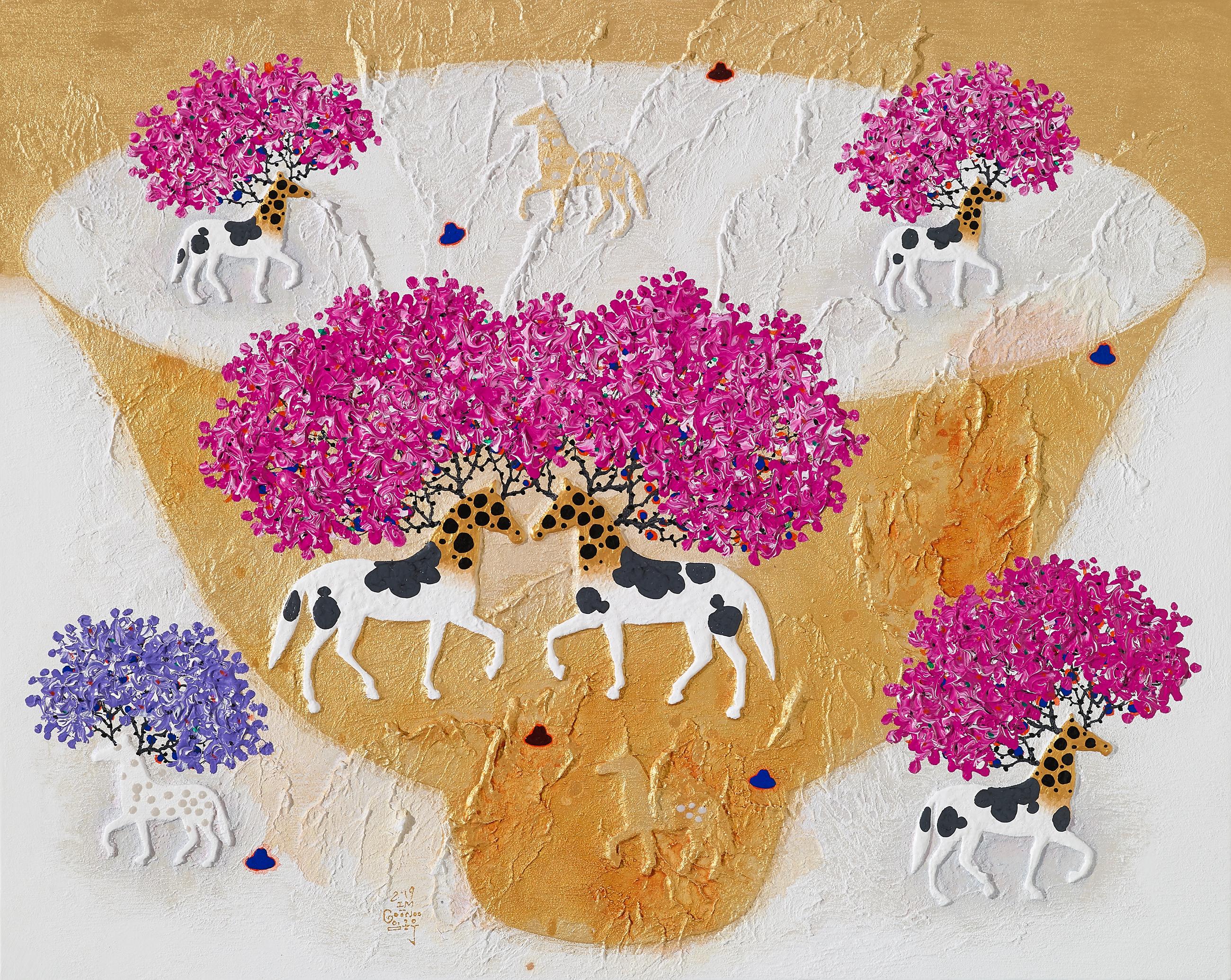 À̹ø Àü½Ã¿¡¼­ ÀÓ±Ù¿ì ±³¼ö´Â ¹«¸ªµµ¿øÀ» »ó¡ÇÏµí ÆîÃÄÁø ¹ÙÅÁ À§¿¡ È­·ÁÇÑ ²É°ú ¸ùȯÀûÀÌ°í »õ·Î¿î ´À³¦ÀÇ µ¿¹° À̹ÌÁö¸¦ ´ã¾Æ µ¶Æ¯ÇÑ ÀÛǰ¼¼°è¸¦ ÆîÄ£´Ù. ±×¸²¿¡ µîÀåÇÏ´Â <¸»+Á¥¼Ò+±â¸°>ÀÇ ¡®À¯ÅäÇÇ¾Æ Ä³¸¯ÅÍ¡¯´Â Çö´ëÀÎÀÌ ²Þ²Ù´Â ÀÌ»óÇüÀÇ µ¿¹°·Î¼­ ¿ªµ¿¼ºÀÇ »ó¡ÀÎ ¸»°ú dz¿äÀÇ »ó¡ÀÎ Á¥¼Ò, ±×¸®°í ³ôÀº À§»óÀ» °¡¸£Å°´Â ±â¸°ÀÌ ÇÕÃÄÁø Çູ ij¸¯ÅÍÀÌ´Ù. ÀÌ ¼¼ °¡Áö¸¦ °¡Áø ÀÌ»óÇü µ¿¹°ÀÇ ¸Ó¸®¿¡¼­ ³ª¹«°¡ ÀÚ¶ó°í